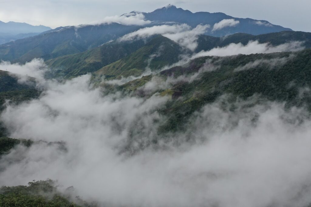 These atmospheric forces combined would by themselves lead to a very wet climate but the Chocó has two more local features that push it to global extremes. The Andes here curve eastwards, acting like a funnel that concentrates the winds as they move inland. As their slopes become overgrown with vegetation, plants ricochet water droplets against each-other, causing what some scientists have dubbed the Lluvia Horizontal (lit. horizontal rain), a dense fog that covers the most forested areas.