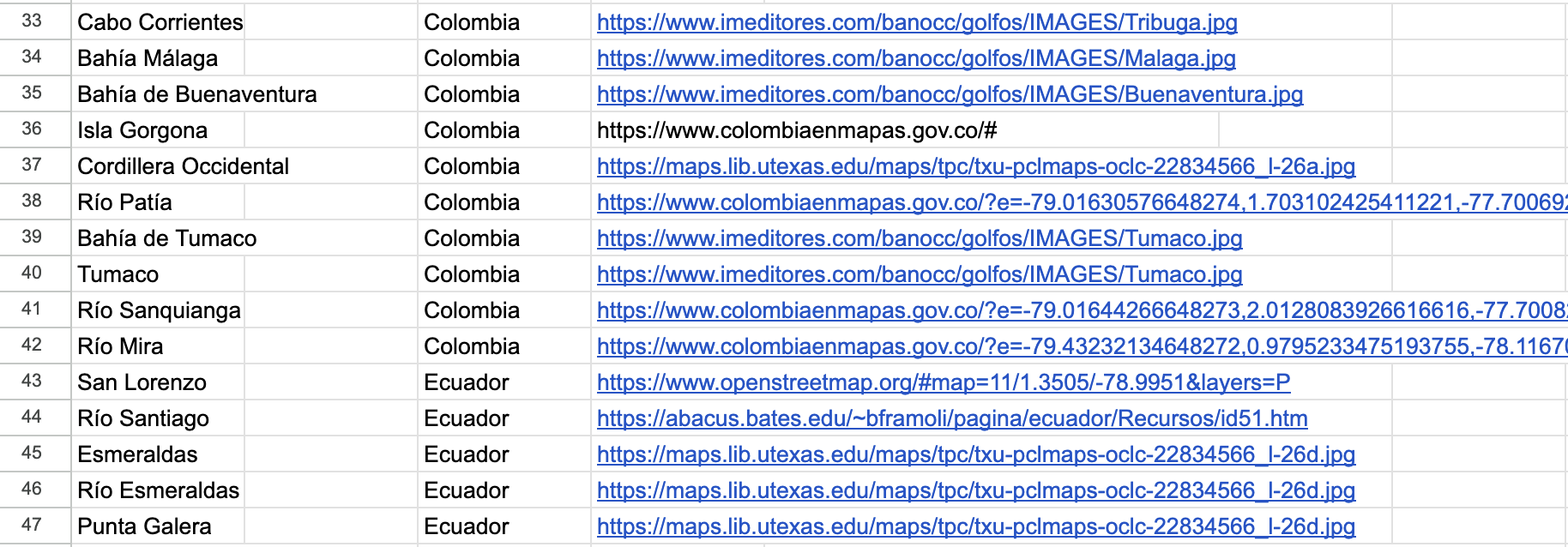 I paid attention to place-names that appeared repeatedly in articles about history and culture. Santa Cruz de Mompox, a town of about 46,000 people in the northern Caribbean plain, is not remotely close in size to the largest cities in Colombia, but in 1810, was the first place in Colombia to declare independence from Spain, and appeared consistently in lists and texts about Colombian history and culture.
